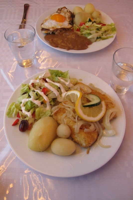 There were old abandon homes and farms all over the place. It was pretty windy and cold the further north we went and we saw some ice and snow on the mountains but not as much as we would see in the West Fjords. We were having a hard time getting used to the fact that it never gets dark in the summer so we were missing out on dinner because places were closed before we realized it was "night time". Here we enjoyed some tasty food and very nice tourists as company.